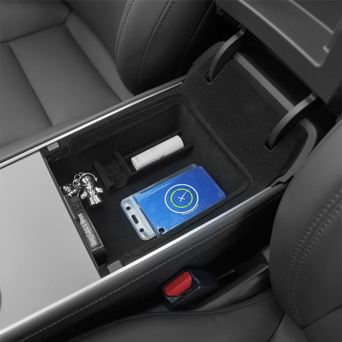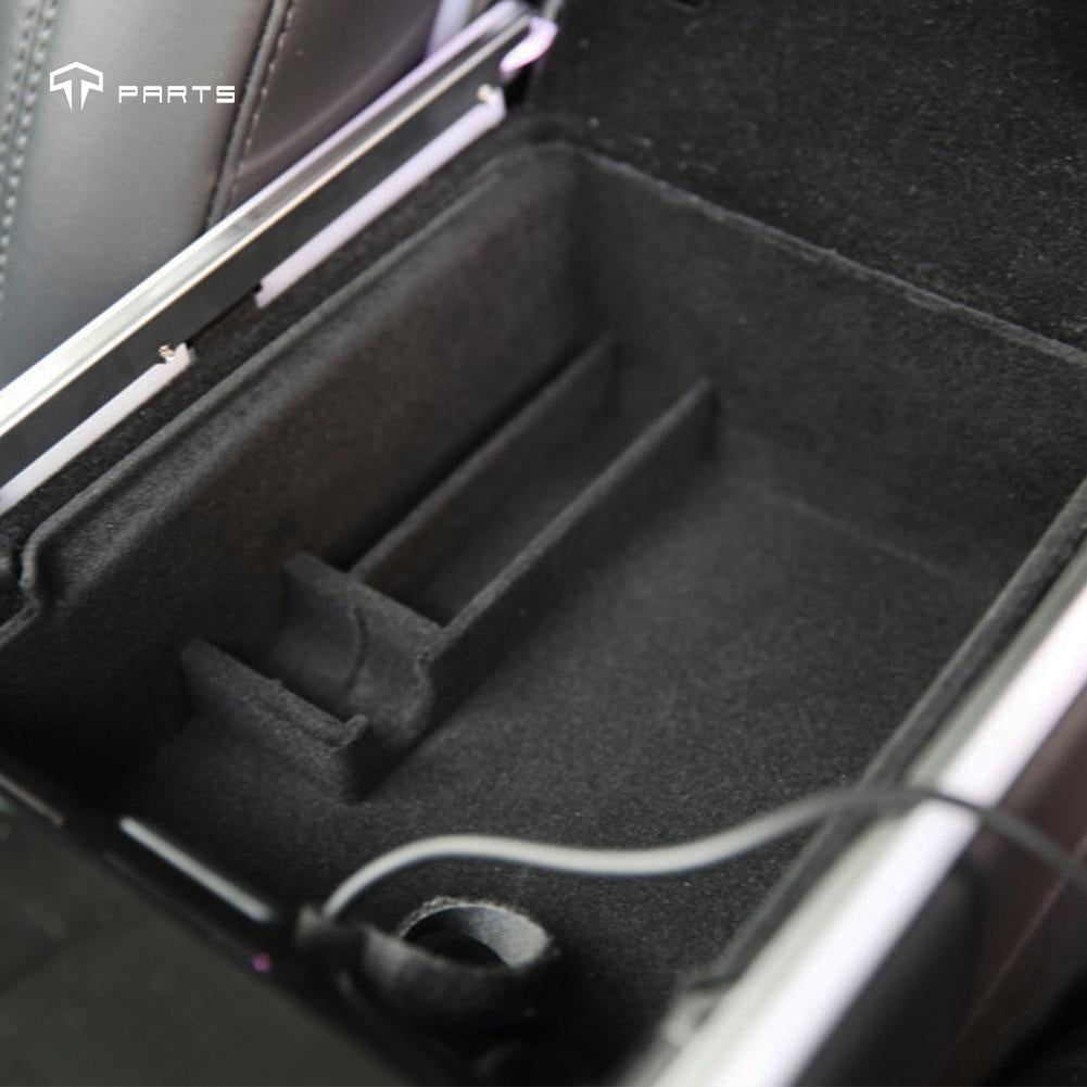 Armrest Storage Tray/Console Storage Organizer for Tesla Model 3 & Y helps you stay organized with flocked bins for your center console and convenience on your Tesla.