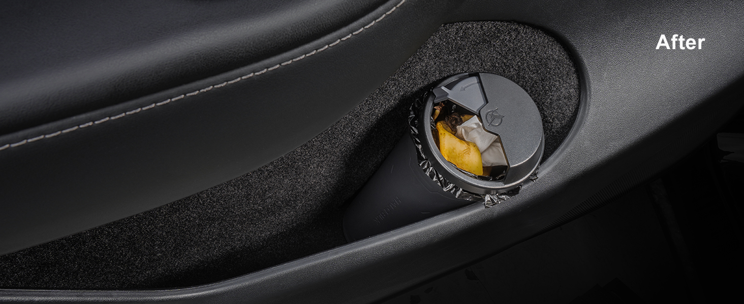Compartments and does not take up the remaining water cup holder spaceEasily handles small garbage and can be used with four doors for a clean trip for the whole family