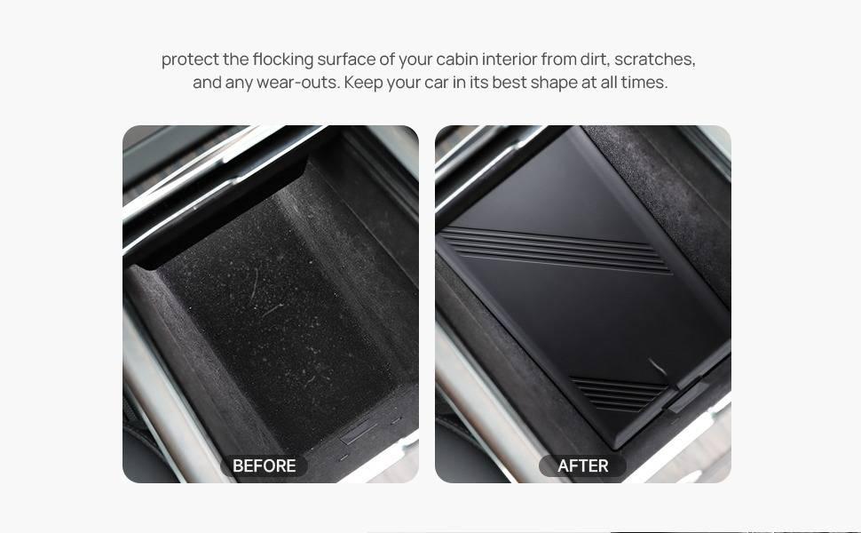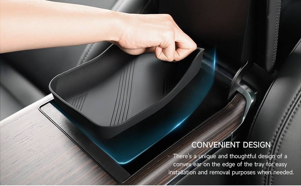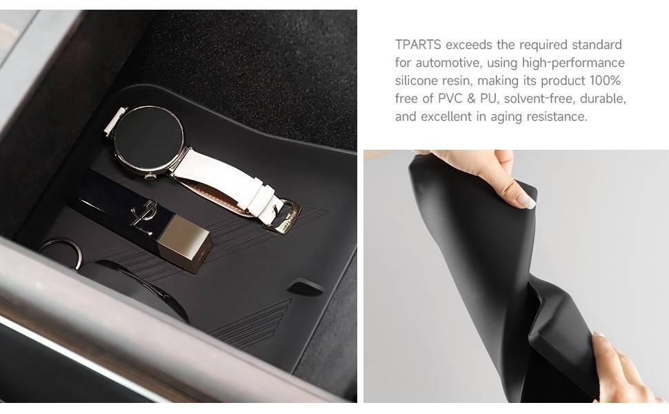 Perfect Fitment: Taddon Console/Armrest Silicone Pad is custom designed for Tesla Model S/X 2021-2024. It adopts a complex, high-accuracy, and precision 3D scanning measurement process. Ensures the tray fits seamlessly to your NEW Model S/X