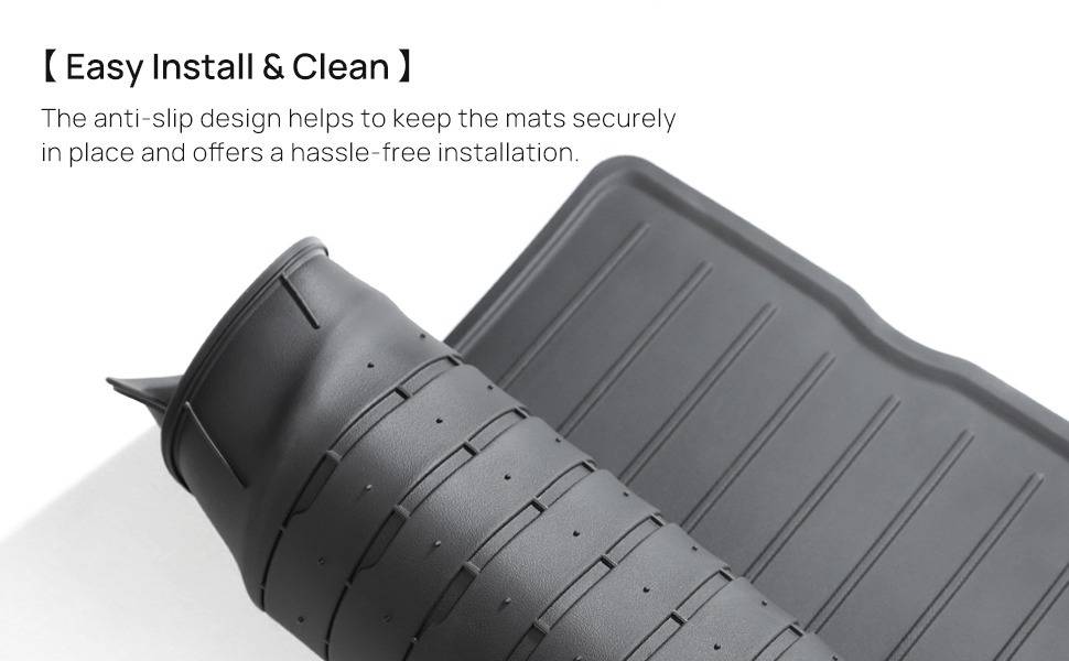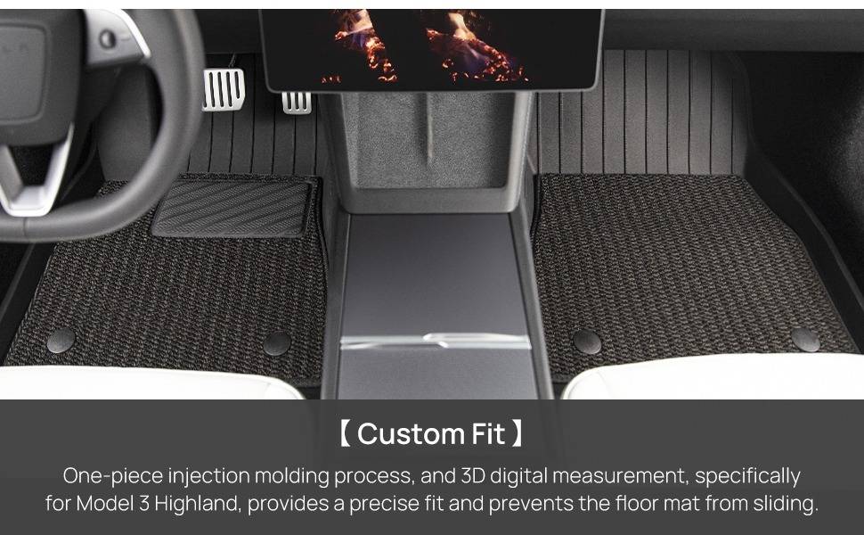Custom Fit: One-piece injection molding process, and 3D digital measurement, specifically for Model 3 Highland, provides a precise fit and prevents the floor mat from sliding
