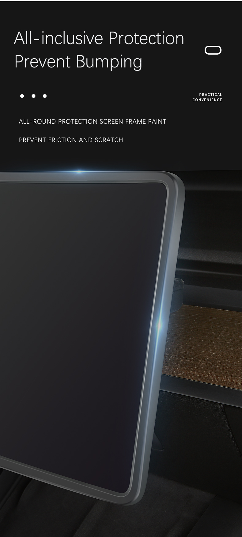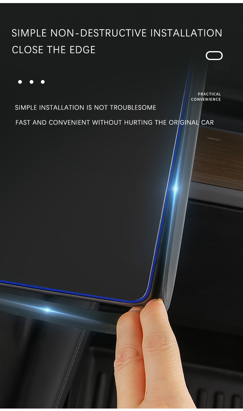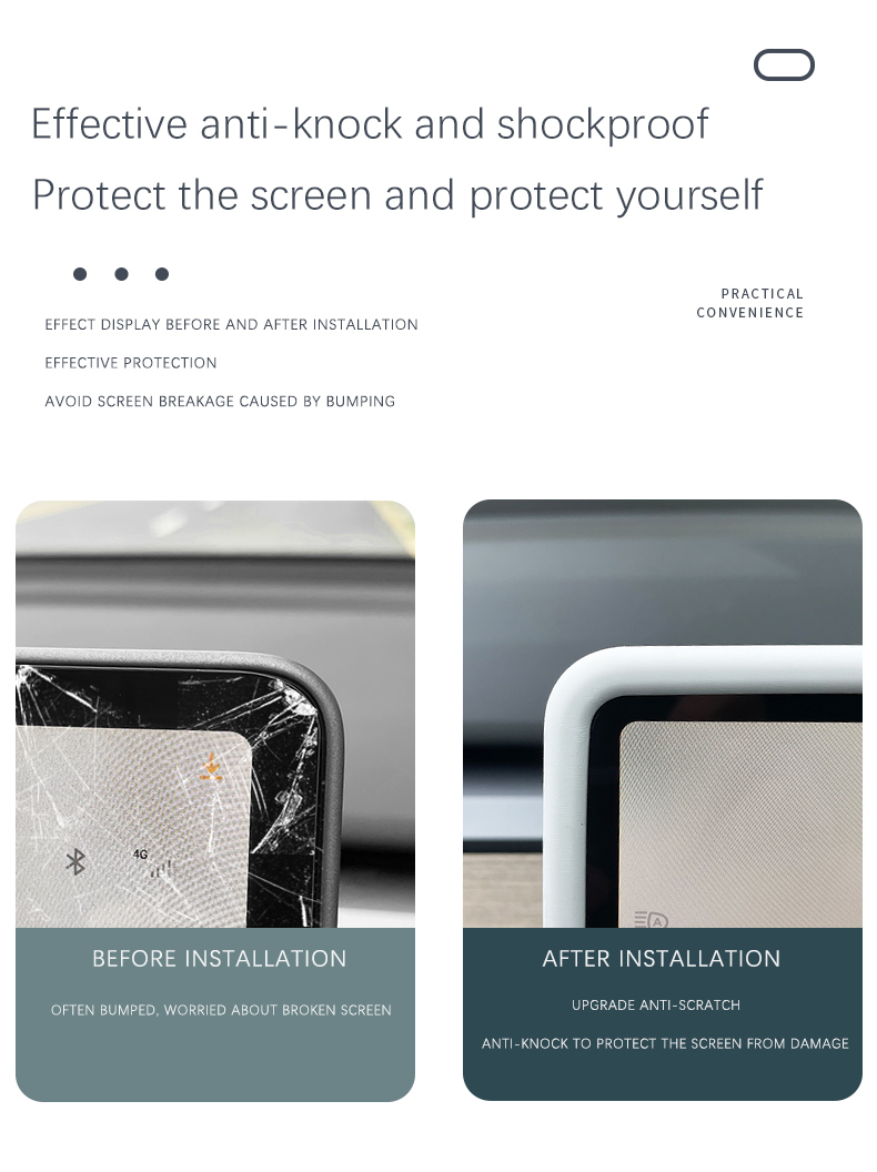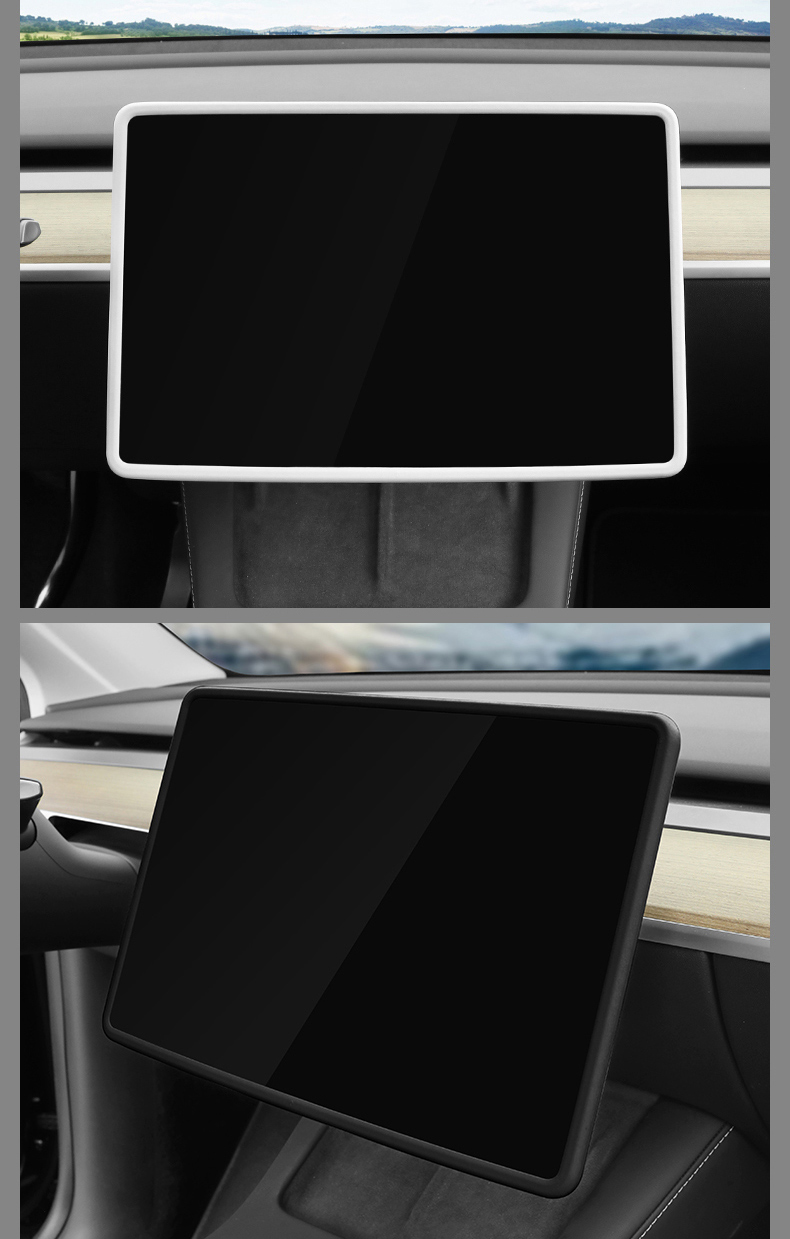 Safeguard your Tesla Model 3 or Y's touchscreen with this eco-friendly silicone frame protector. Designed to absorb shocks and prevent damage to the screen edges, it offers full coverage protection. Made from high-quality, flexible silicone, it's easy to install and complements your vehicle's interior aesthetics.