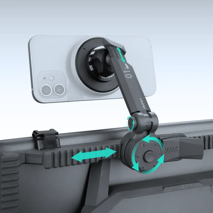 - Based on the Picatinny rail, the HaloStation allows users to flexibly achieve the separate and non-interfering use of a phone holder, camera mount, smartwatch mount, and storage organizer in any position on the screen
