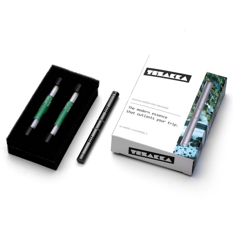 Collaborates with SCENTiny and designs this Invisible air freshener for all Tesla Model 3/Y owners, with three scents options for starter kits and eight scents options for refill sticks.