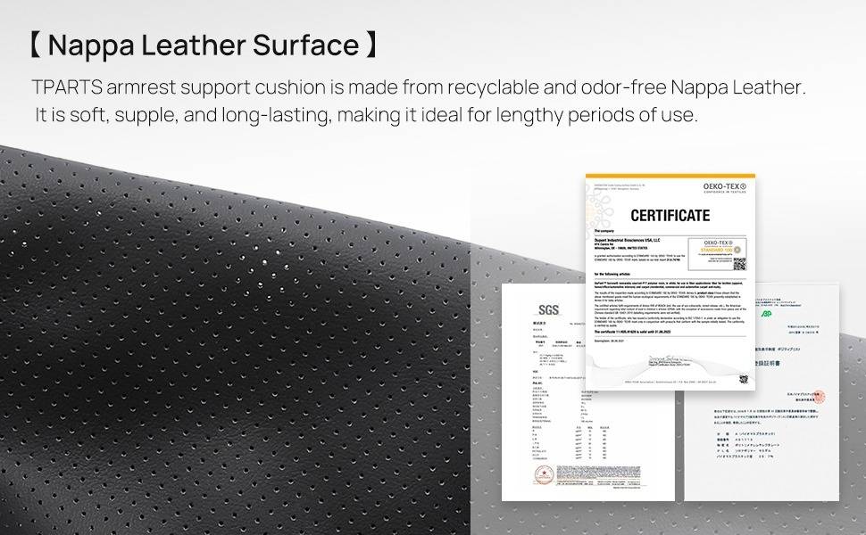 - 【NAPPA Leather Surface】 This armrest support cushion is made from eco-friendly and odor-free Nappa leather. It is soft, supple, and long-lasting, making it ideal for lengthy periods of use