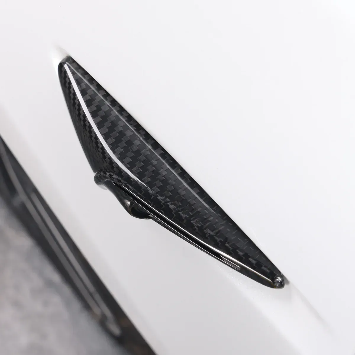 Real carbon fiber side camera covers are the best choice for carbon fiber lovers. 3D digital measurement makes sure the cover 100% fits the side camera.