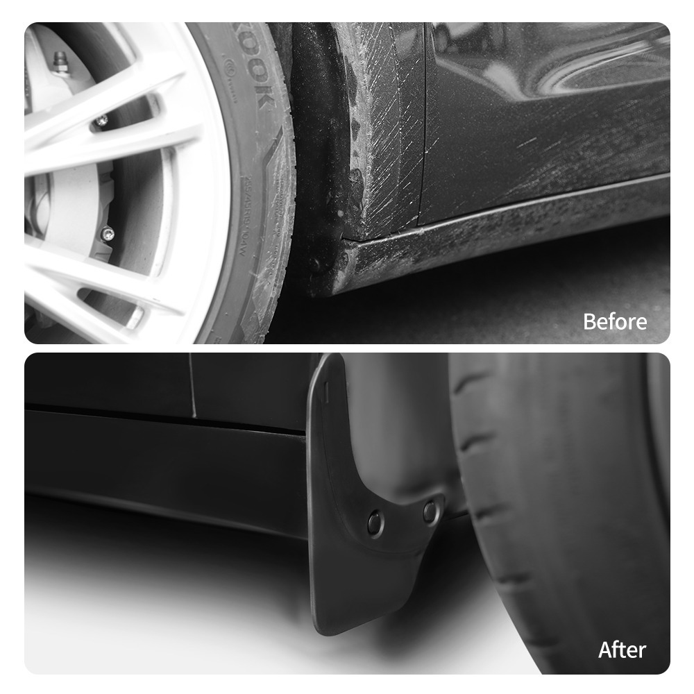 Ready to drive your Tesla for a road trip? Be prepared for the dirt, rocks, and debris on the road, it could hurt your paint. Mud Flaps Splash Guards are designed according to Tesla OEM mud flaps with multiple improvements. Clips come with the set and no drilling is required for installation.