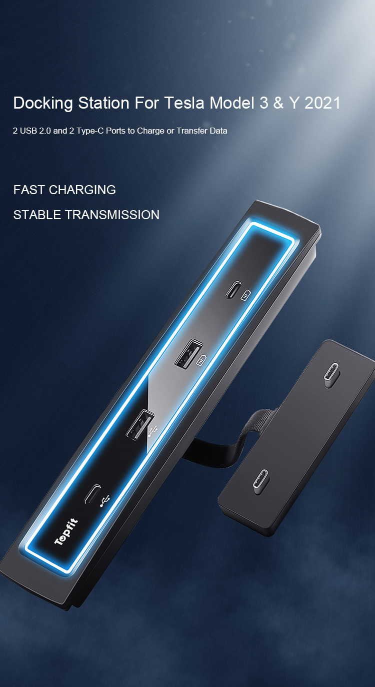 USB LED Hub Docking Station for Tesla Model 3/Y – Smart Sensor Center Console