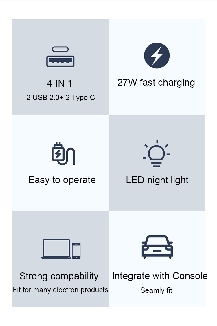 - HIGH PERFORMANCE: PD Port supports 27W PD output,2 Type C ports and 2 USB ports,Heat resistant engineering,Built in temperature protection.